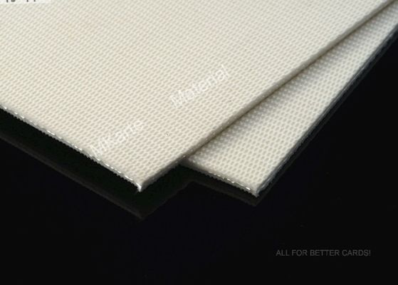 Witte Gelamineerde Stootkussen van het silicium wordt het Rubberkussen ontworpen voor het lamineringsprocédé voor diverse plastic kaarten met inbegrip van betaalpas, creditcard, en royaltykaart. Het werkt met de plaat van het lamineringsstaal in het plastic procédé van de kaartlaminering.
